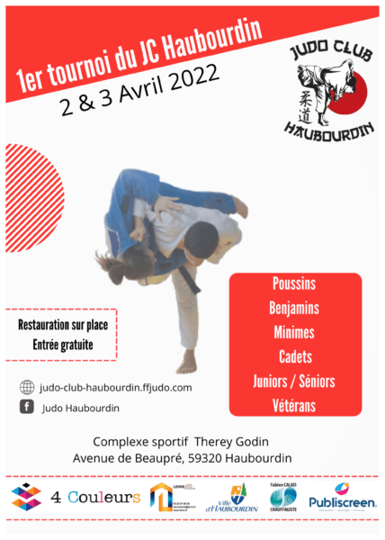 LE JUDO CLUB HAUBOURDIN A L’HONNEUR DE VOUS INVITER AU 1er TOURNOI DU JC HAUBOURDIN qui se déroulera les 2 & 3 avril 2022.
