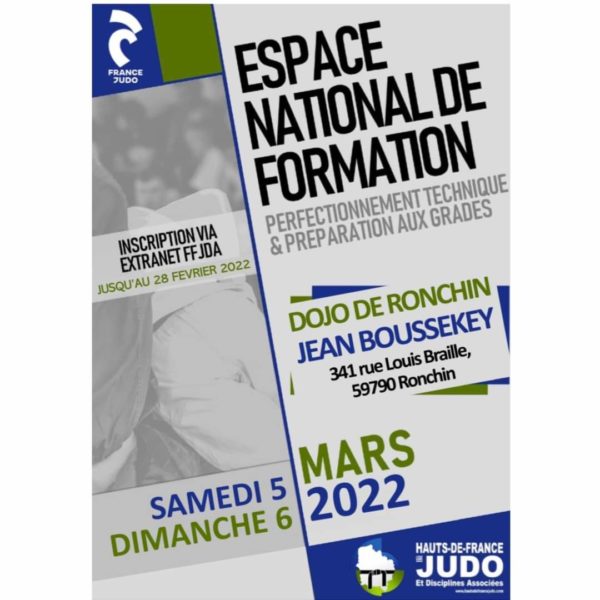 L’Espace National de Formation dédié au perfectionnement technique et préparations de grades aura lieu le samedi 05 mars et dimanche 06 mars 2022 au